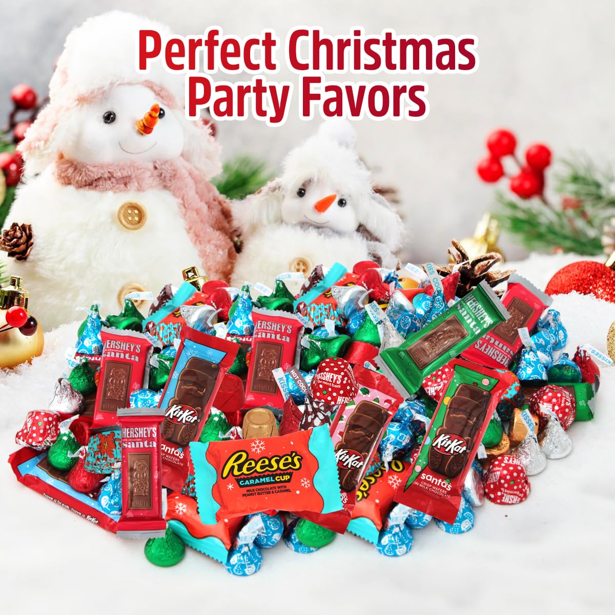 8lb Christmas Chocolate Mix: Indulge in an irresistible 8lb Christmas Chocolate Mix that features a delicious assortment of holiday treats, including Cookie n Cream Snowman Kisses, Milk Chocolate Kisses, and Peppermint Bark Bells Candy. Each bite offers a delightful experience, making this perfect for family gathering, holiday parties, or just as a sweet treat to enjoy during the festive season.